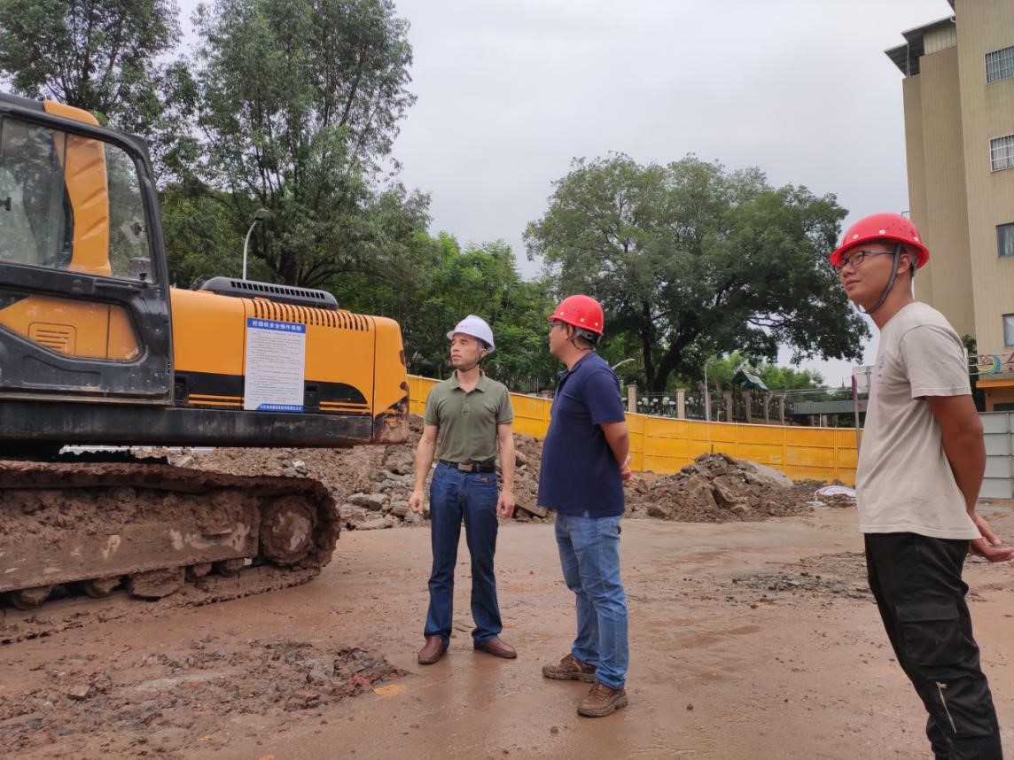 巡查府北停车场项目工地,检查现场支护桩施工情况,强调机械施工安全。