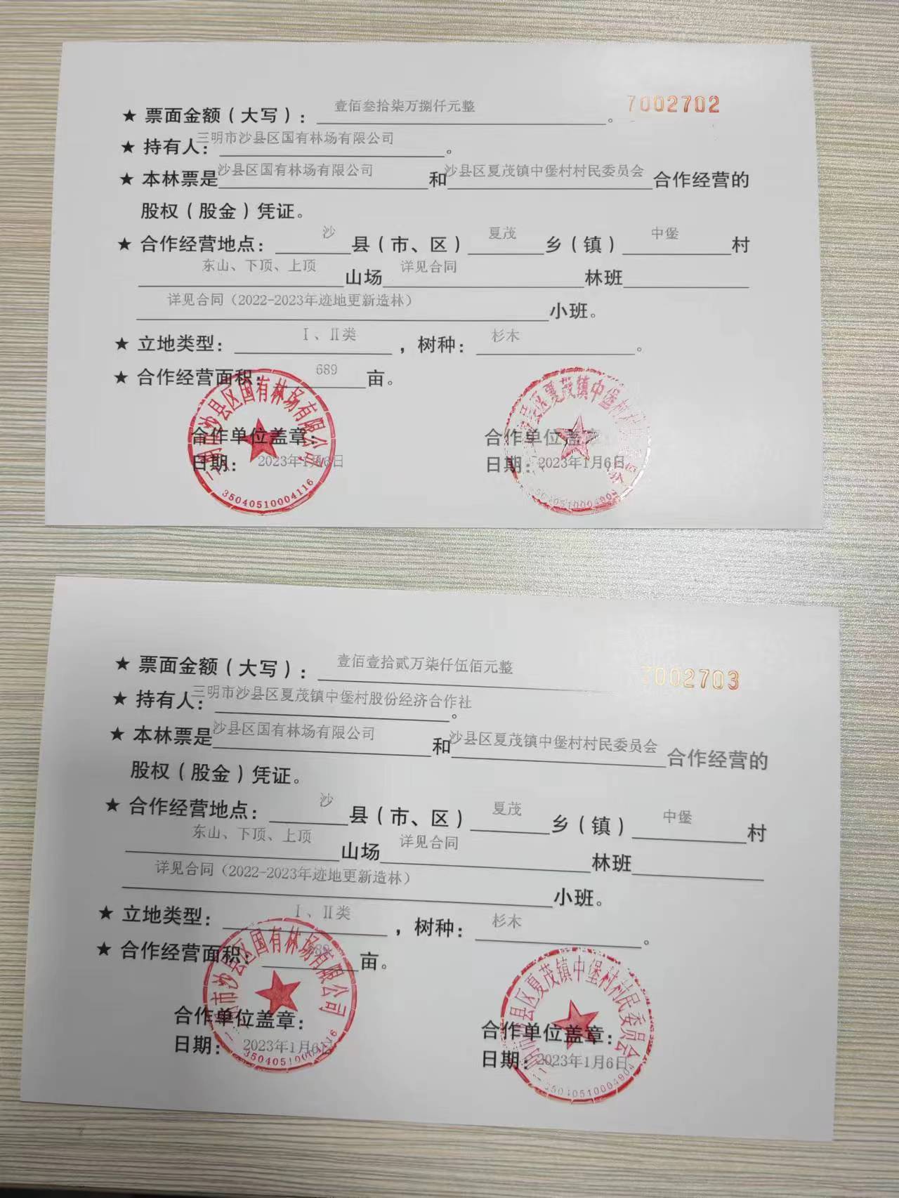 建立多形态、多业态的林业利益联结机制,在全省首创股权共有、经营共管、资本共盈、收益共享的林业“四共一体”经济模式,搭建国有林场、村集体及林农间的合作桥梁,实现资源共享、优势互补、共同发展。一是深化以场带村联营机制。以“国有林场+”为切入点,推动国有林场与乡镇集体林场、村委会、村民小组等集体组织开展合作经营,创新合作造林、股份合作经营、委托经营、整村推进等场村联营形式,以“专业的人做专业的事”,破解村集体缺资金、缺技术、缺管理困境,实现林地专业化经营,提升森林质量和资产价值。据测算,合作林每亩平均出材量可从7立方米提高至12立方米以上,村集体每合作1000亩年可增收7万元以上。二是创新集体资金进山入林机制。引导集体资金投入国有林场森林经营与培育项目,为国有林场高质量发展提供资金支持。由村集体出资金,即村集体以乡村振兴补助资金入股占比10%,国有林场以林地、技术、管理等入股占比90%,村集体每年享受投入资金5%的预分红,主伐时收益按股分配,这一做法既保障乡村振兴资金收益,又带动了村集体增收。项目首批试点凤岗街道水美村、高砂镇渔珠村、高桥镇杉口村、大洛镇昌荣村等4个乡村振兴扶持村共投入国有林场345万元用于造林抚育,每年预分红5%,合作30年分红可达517.5万元。三是推广联林带户机制。推广以沙县区国有林场有限公司、林业集团有限公司等国企为主的联林带户机制,为林农户提供林地林木代管、统一经营作业、订单林业等专业化服务,特别是将国有林场专业化联营范围扩大到林业经营大户、林农个体,推动不同林业新型经营主体做大做强,解决外出创业林农的后顾之忧。目前,全区已有108个林业经营主体完成合作面积11.9万亩,受益林农达3.2万余人。