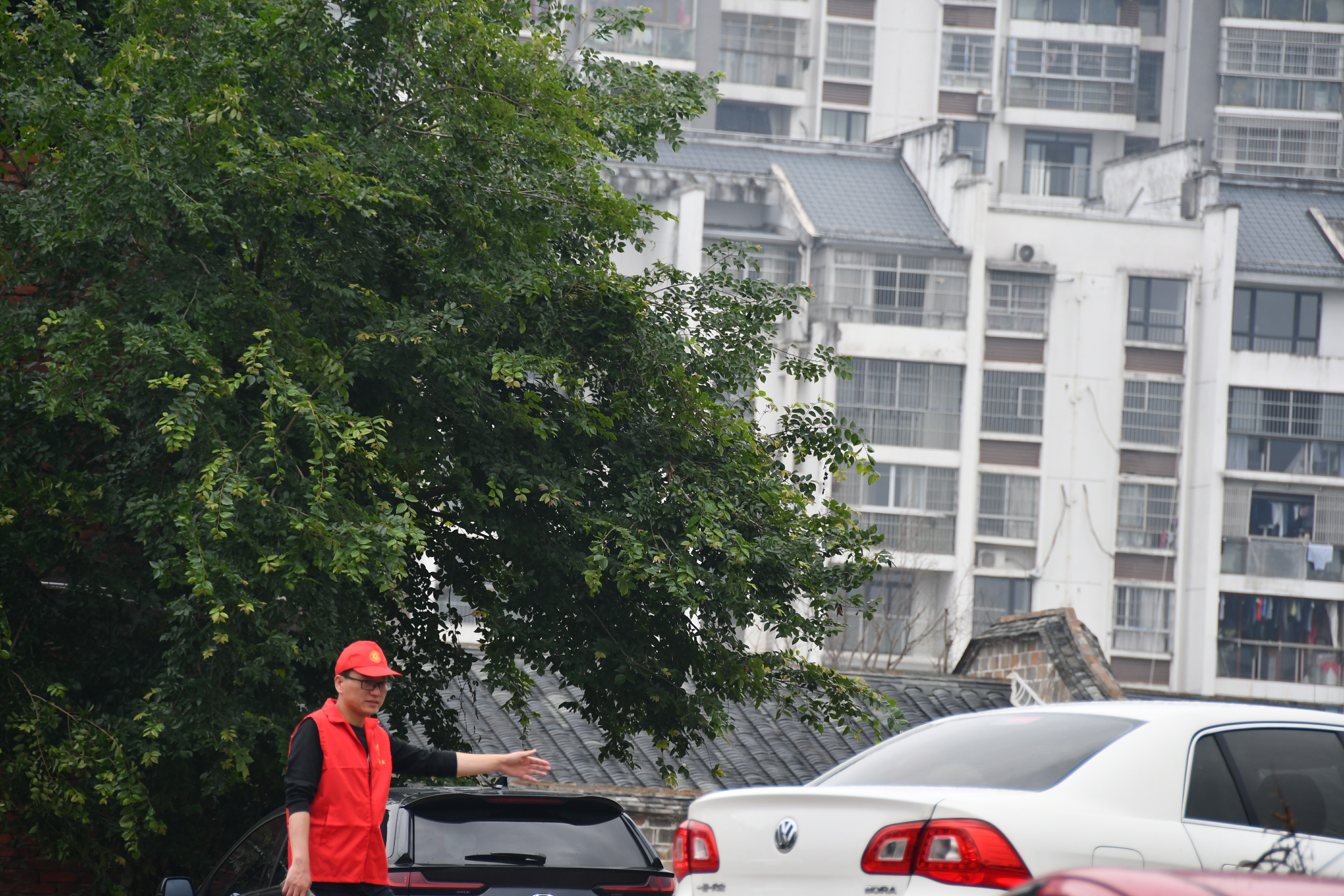“五一”小长假的东门古街,各类文旅活动精彩纷呈,游人如织。身穿红色马甲的志愿者在东门古街周围多个停车点定岗维持秩序,指挥过往车辆减速慢行,引导车辆有序停放,热情地为过往司乘人员提供行车路线指引,以实际行动为本次艺术节增添一抹最靓丽的志愿红。