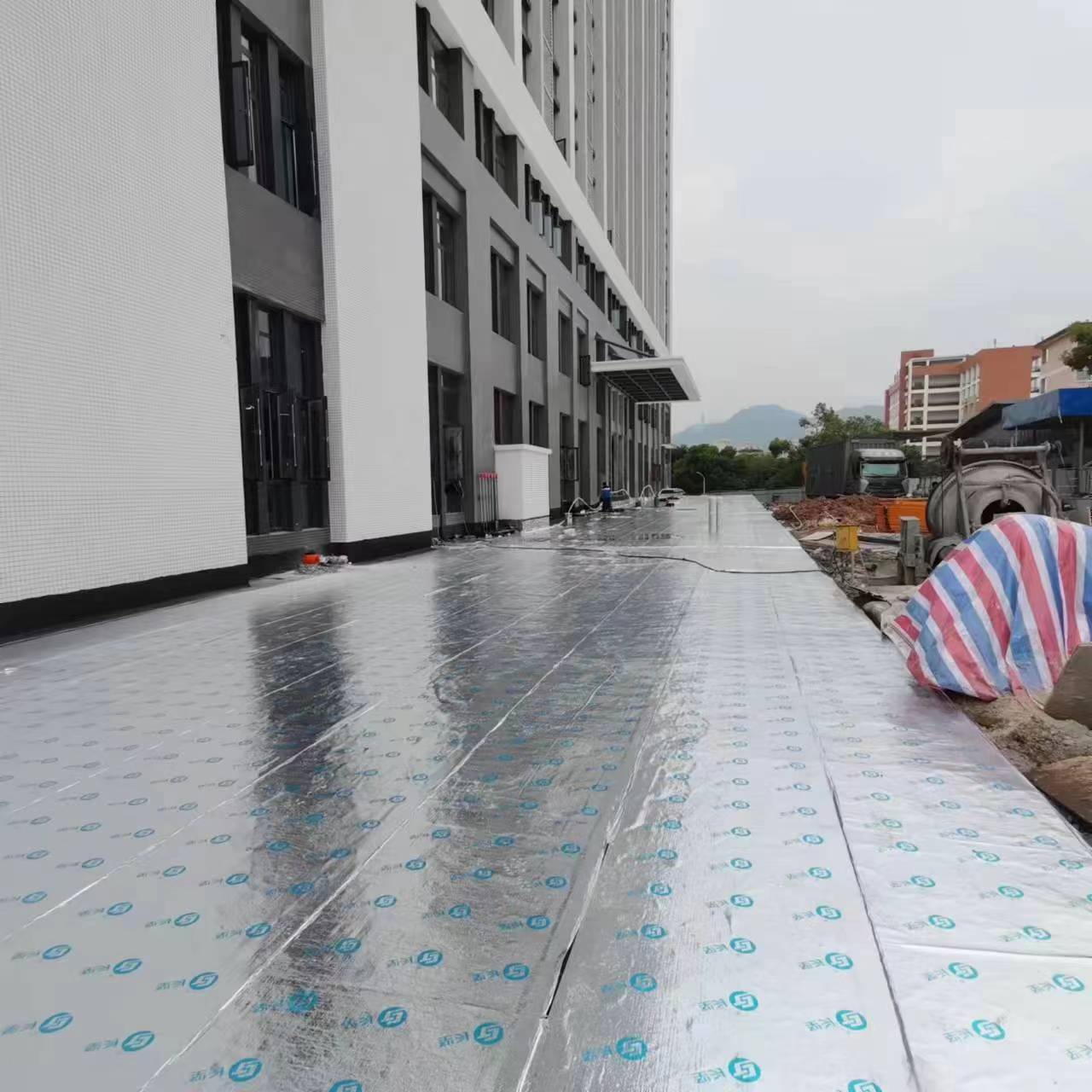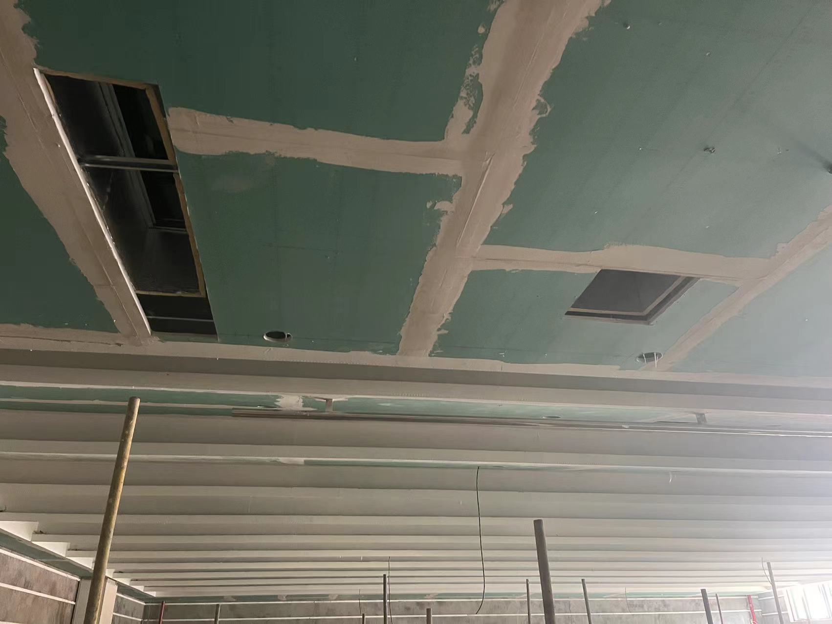 完成水池顶板防水、排烟管道抗振支架安装、初验问题整改以及一层体检中心强电管道给排水管道预埋。进行科室内地砖铺贴。