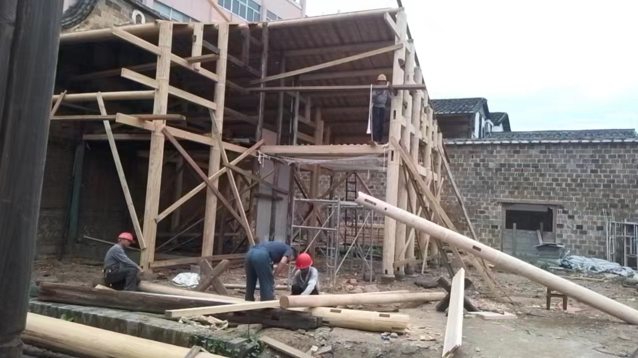持续推进8号院木构件加工及安装。