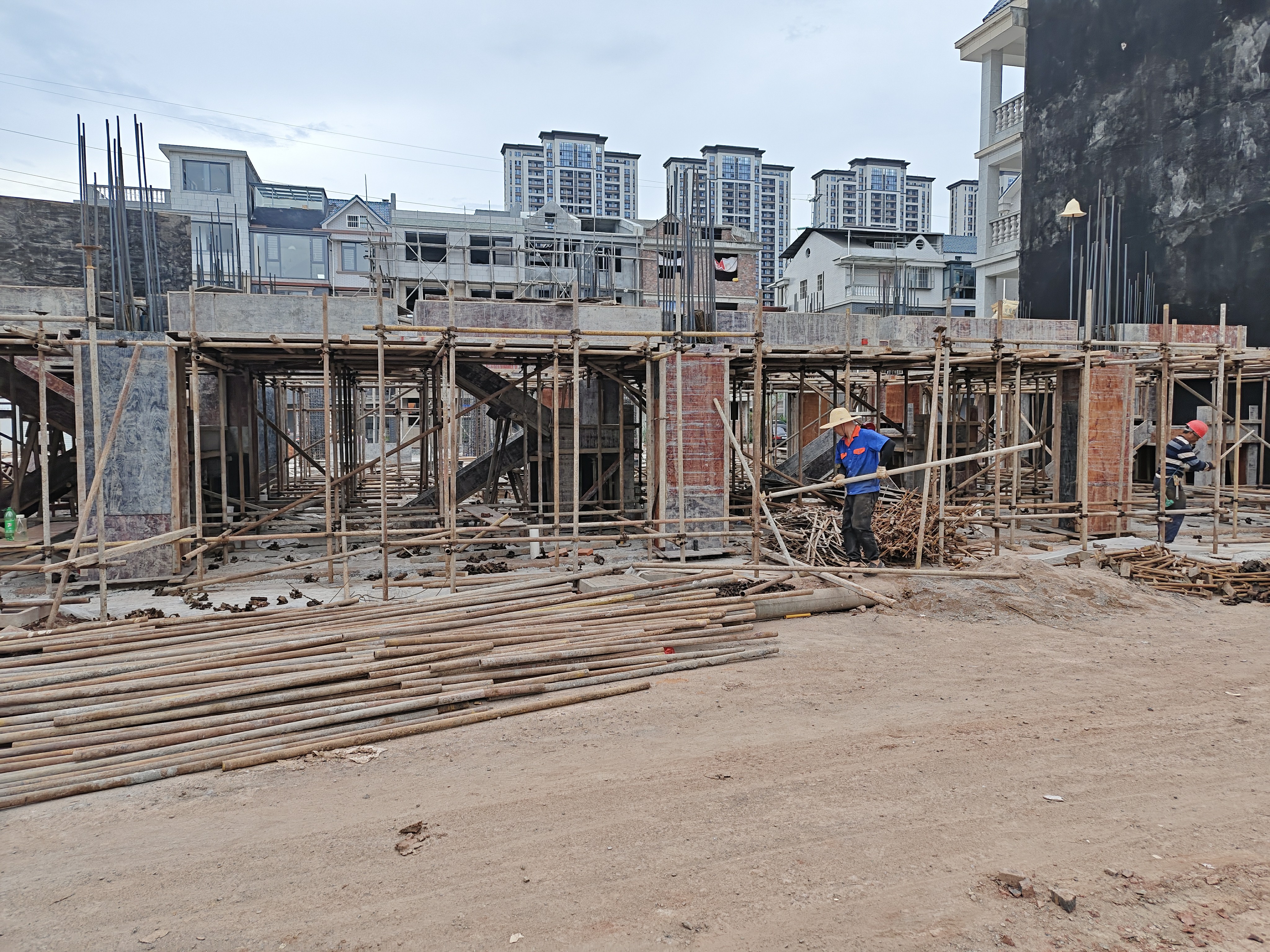 清理现场渣土,落实防台风措施。