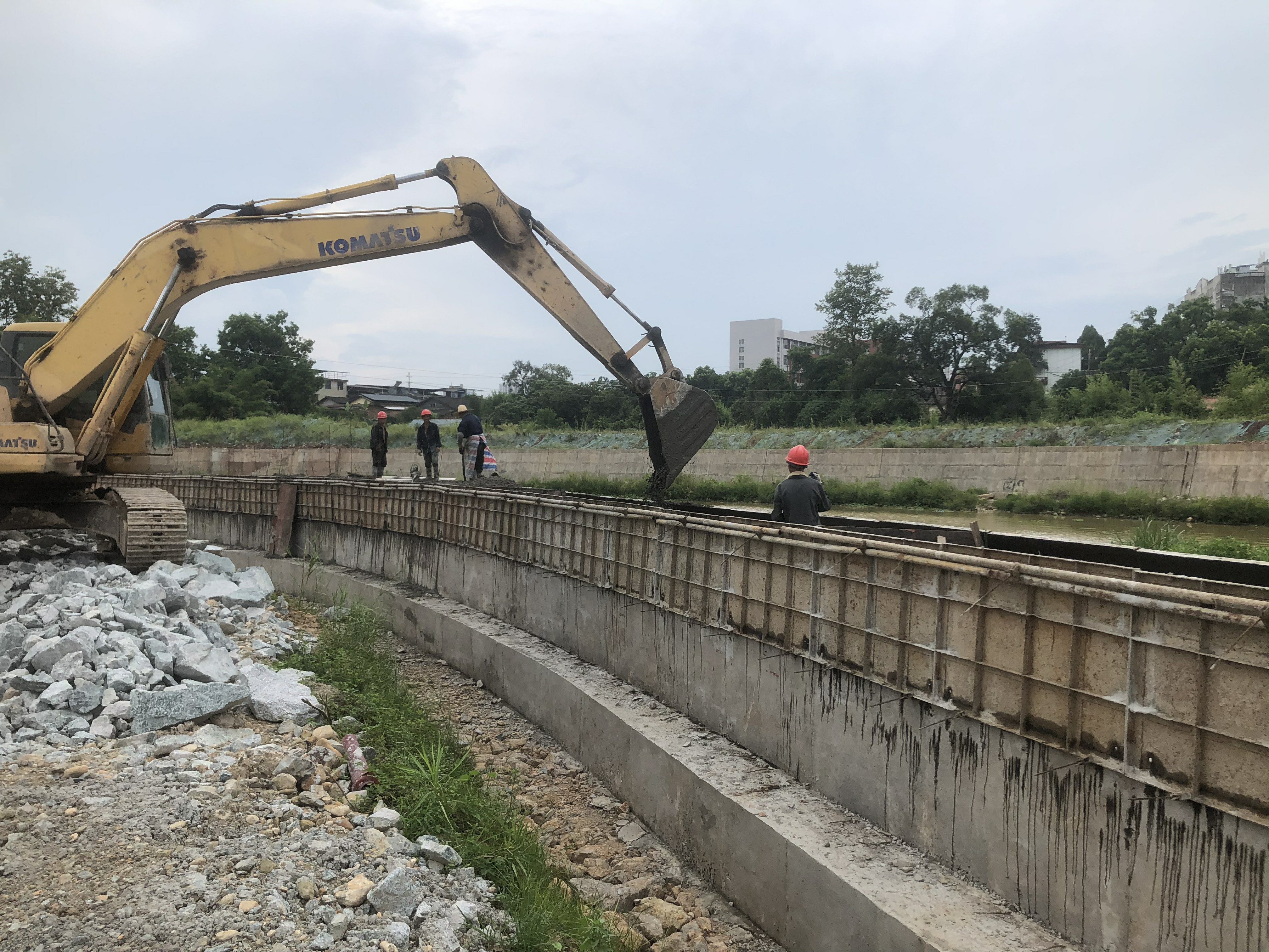 完成宜和佳苑段左岸基混凝土挡墙墙身浇筑以及压顶浇筑184米,混凝土挡墙基础浇筑94米。