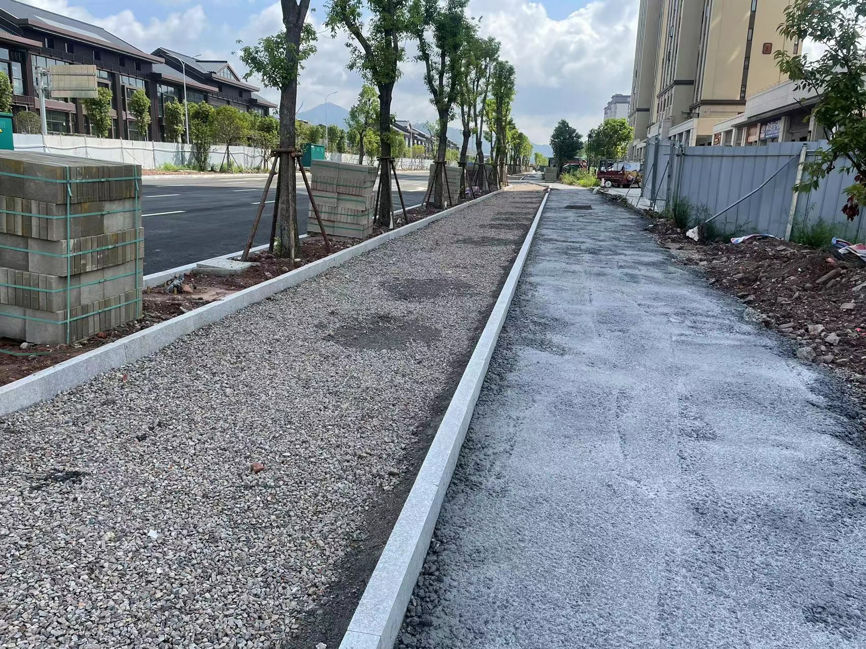 完成非机动车路缘石安装300米,人行道及非机动车道混凝土垫层施工1500平方米。