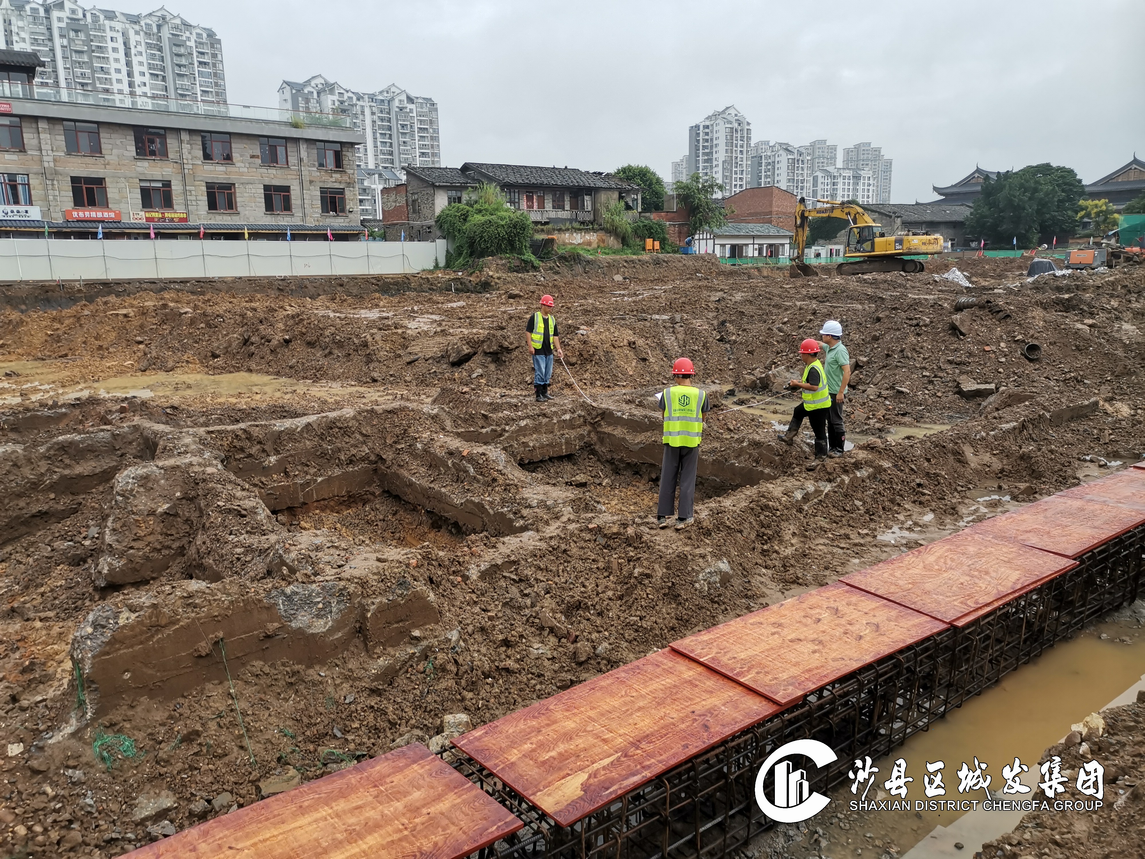 完成广场地面垫层浇筑、1#楼承台基础砼浇筑。