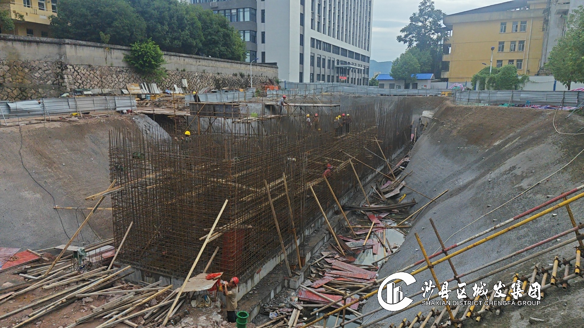 完成支护桩砍桩施工、支护桩检测及锚锁施工,持续推进冠梁、支撑梁施工。