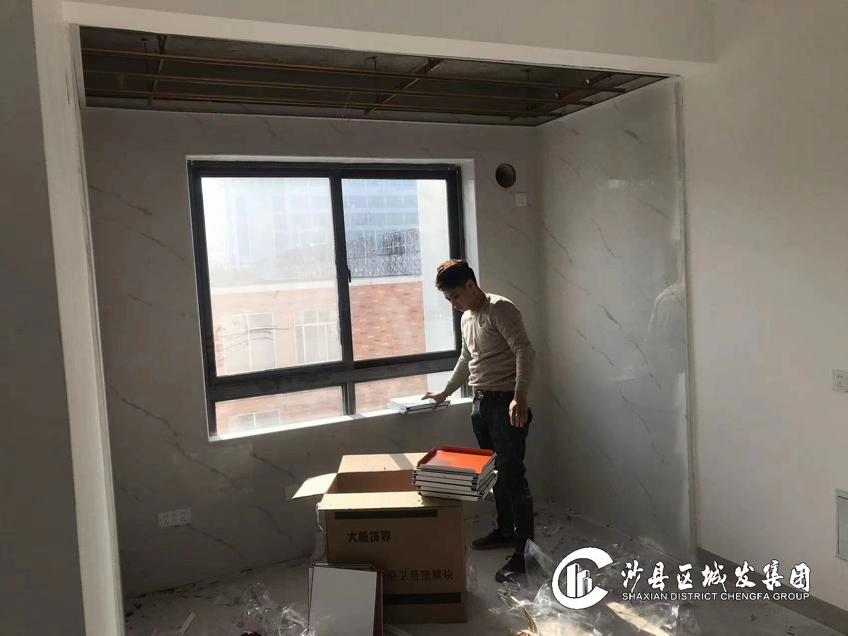 室内衣柜安装完成60%。