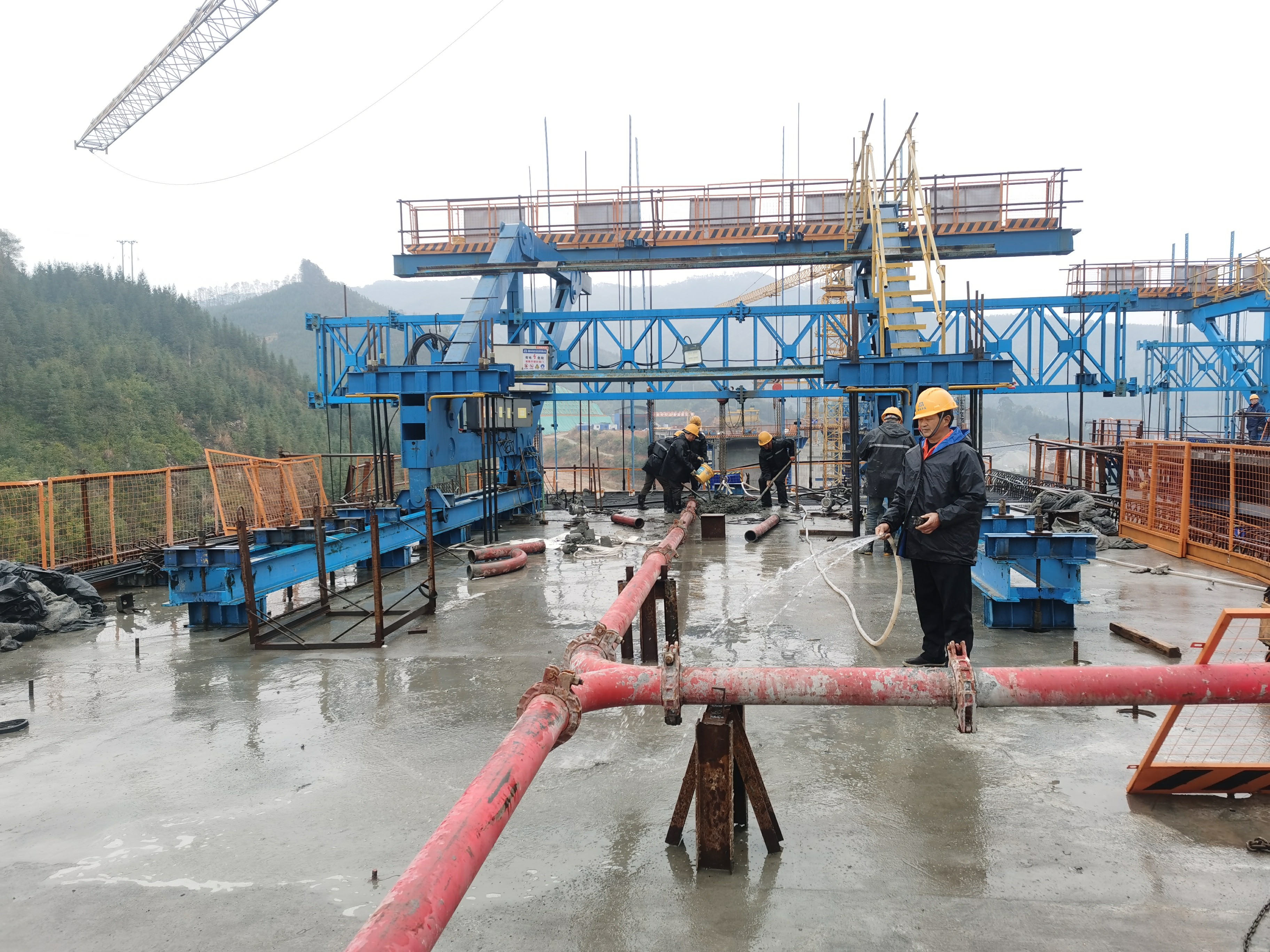 路基挡墙施工完成420立方米,进行长红大桥左7墩1号块拼装挂篮,琅口隧道右洞二衬完成24米。