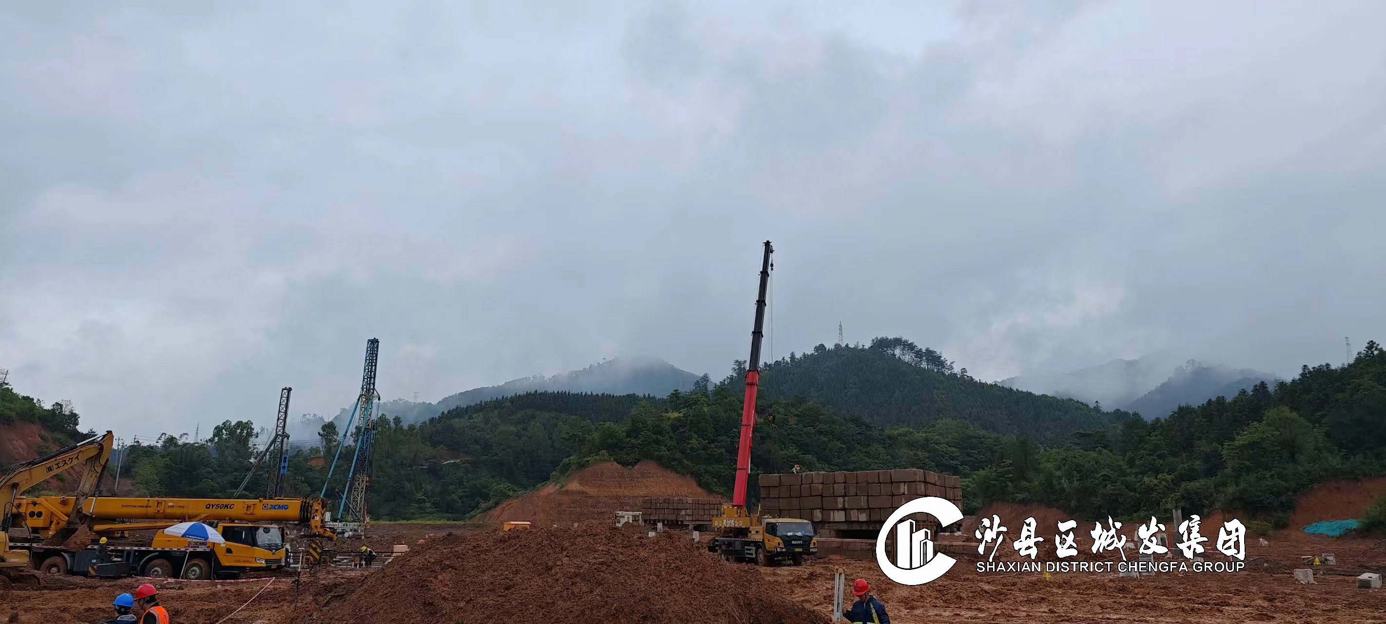因持续强降雨停工,并做好安全防护工作。