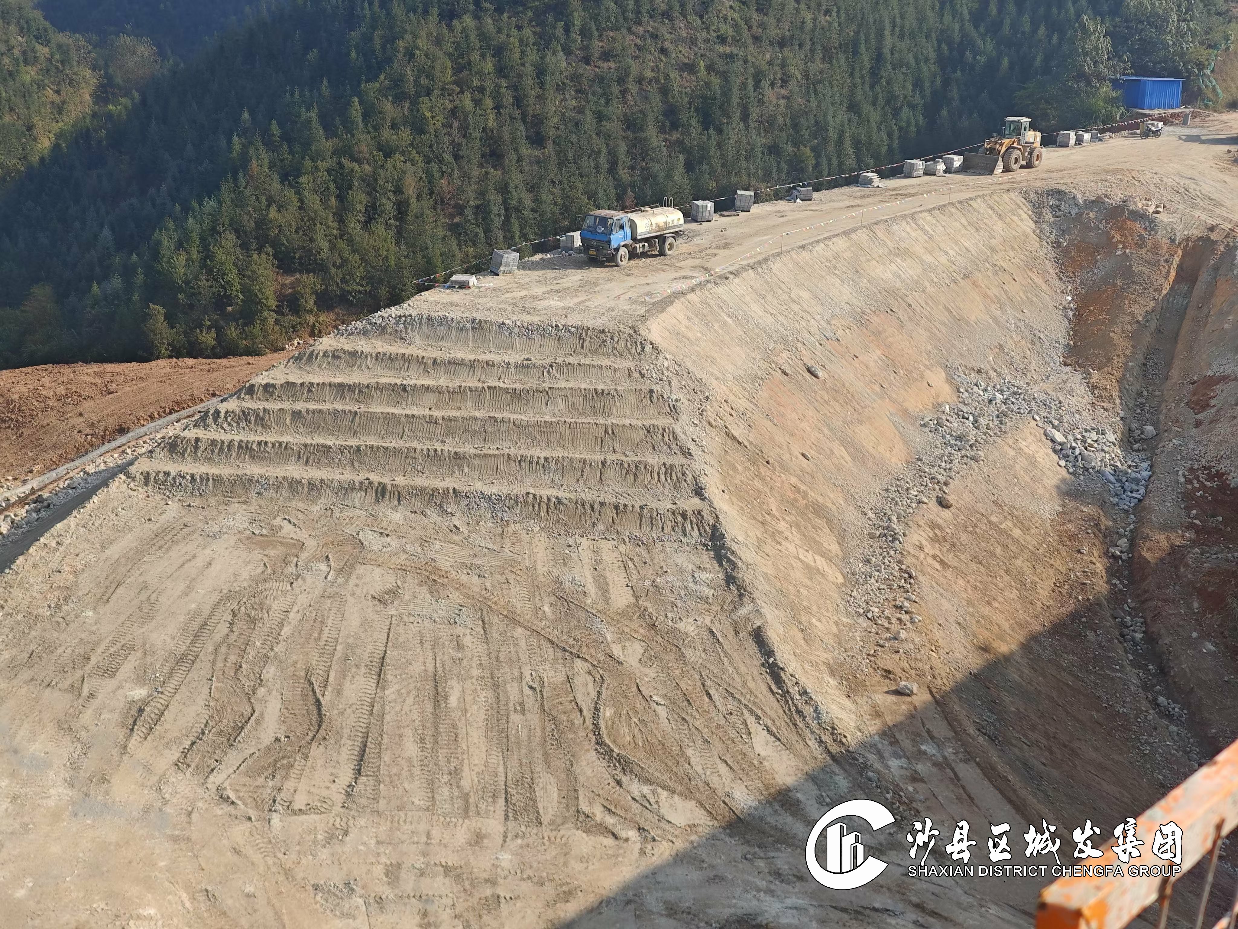 完成承台、地梁、高边坡框架梁、拱形骨架、设备房开挖、边坡支护、垫层、防水层和保护层施工。