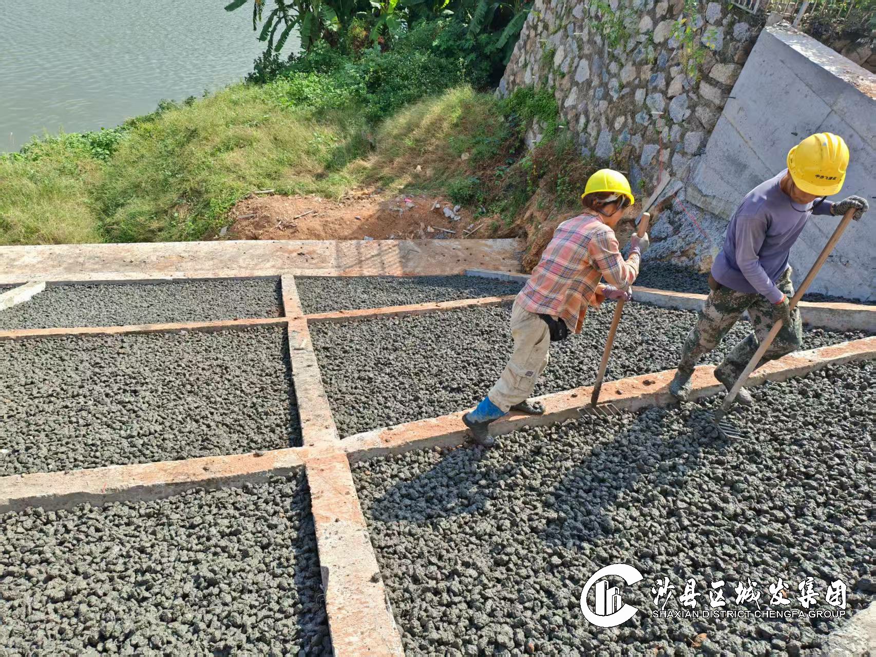 高砂镇堤段:完成高砂段右岸C25框梁砼浇筑、现浇生态砼护坡520米。