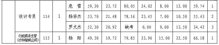 ④112会计岗位、114设计专员岗位、115行政商务主管岗位量化原始分为20分。